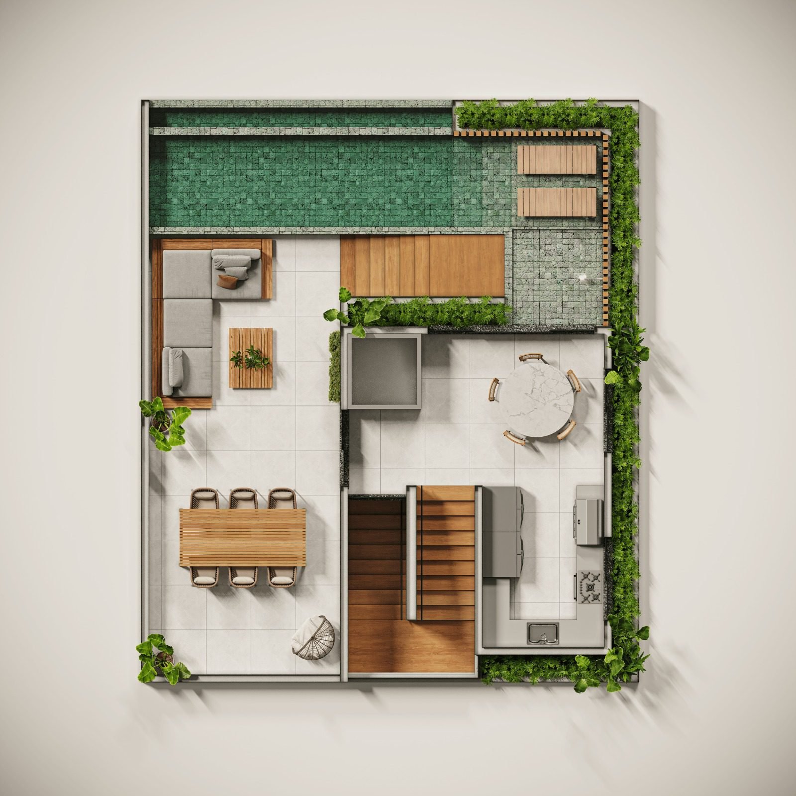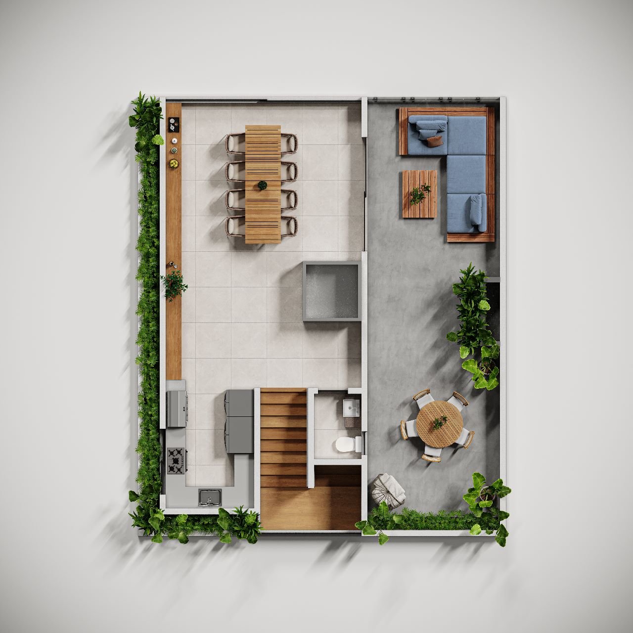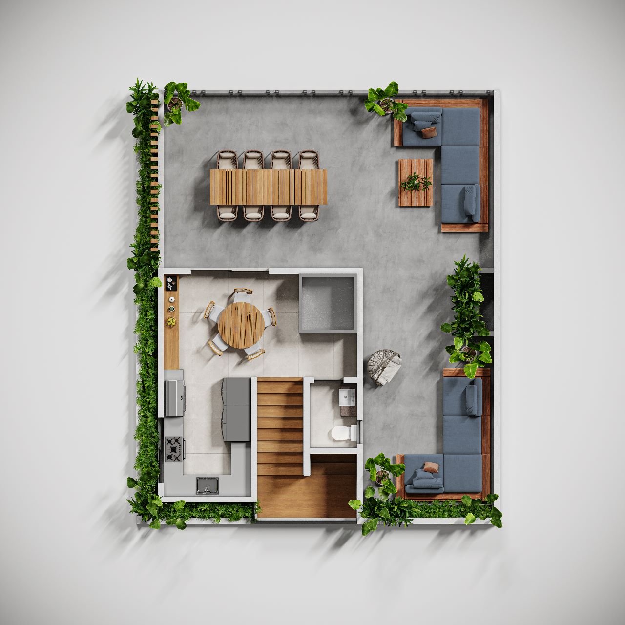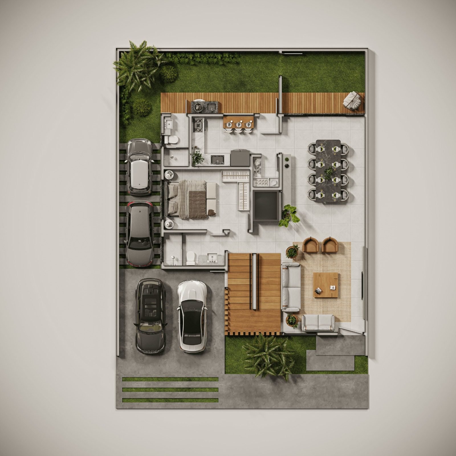 Cada smart house do Meridiano é equipada com sistemas integrados de iluminação, climatização, segurança e entretenimento, todos controlados por comando de voz ou smartphone. A planta foi meticulosamente desenvolvida para maximizar o aproveitamento dos espaços, com ambientes amplos e integrados que proporcionam uma experiência única de moradia moderna. As residências contam com acabamentos premium, infraestrutura para carros elétricos e um sistema de energia solar integrado que garante eficiência energética e sustentabilidade. A área de lazer completa inclui espaços gourmet, academia e área de convivência, todos conectados à mesma plataforma de automação residencial.